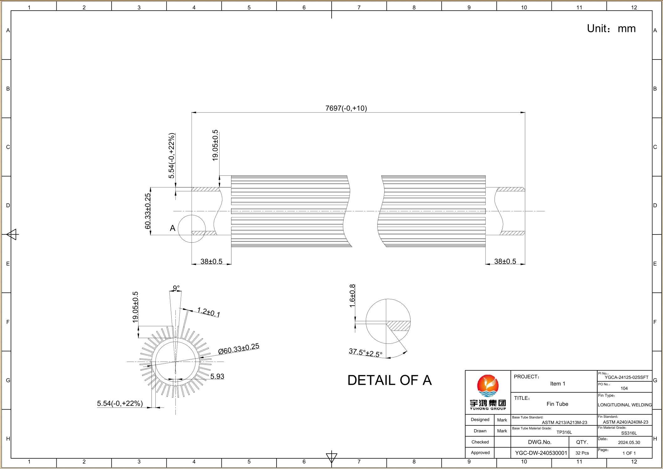 Size of Longitudinal Finned Tube: OD Min.:15mm , WT Min.:1.0mm, Length Max.: 20m/pc